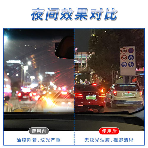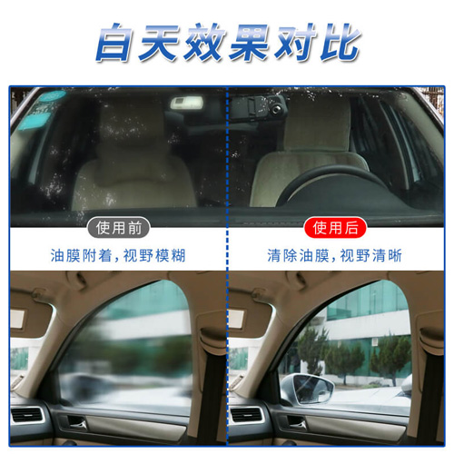 ●化学反应、研磨粒子共同作用,去除玻璃油膜、 雨渍、驱水剂残留等。